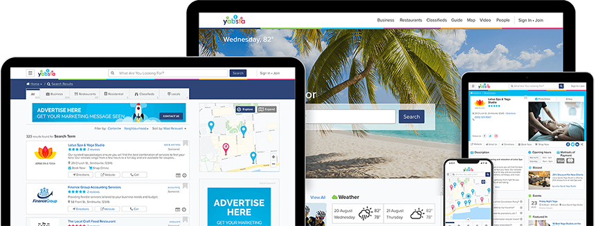 List your business for FREE! Our mobile-ready business listings deliver your key contact information along with a description, logo, reviews, hours, methods of payment, directions and keywords allowing you to get found in local searches.