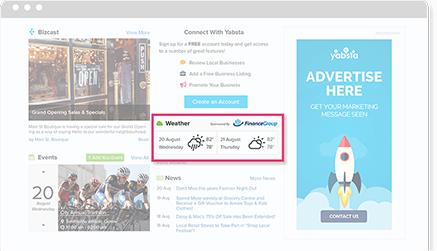 A unique advertising opportunity, feature your businesses logo on the homepage weather widget. Logos and contextual banners can also be included directly on the weather page, allowing for massive viewing potential.