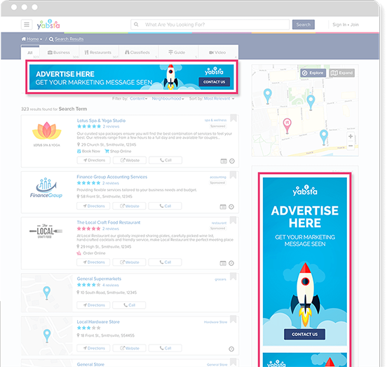 Advertise your business across the site through visually impactful, highly-effective and measurable banner ads. Target potential customers with the right message, in the right place, at the right time.